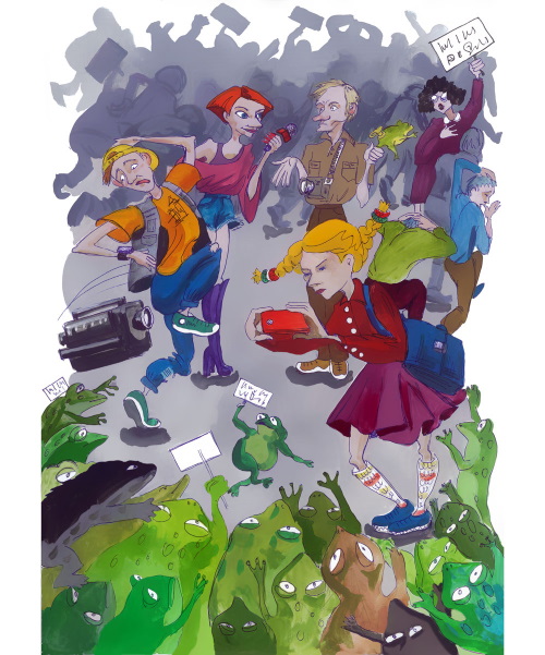 На площади возле городской мэрии бурлил митинг защитников природы. Его инициатором стала учительница биологии Элеонора Витальевна. Возмущённая до глубины души решением местных властей пожертвовать Тишинским болотом ради строительства вредоносного мусоросжигательного завода, она собрала единомышленников – членов местного отделения общественного движения «Зелёный патруль» и других природолюбивых горожан, чтобы сообща высказать этим самым властям своё решительное гражданское «фе». Выразить свой протест вместе со взрослыми пришло и десятка два школьников, лица которых были скрыты под масками лягушек, жаб и тритонов. Это были в основном учащиеся старших классов, в ряды которых затесались и две пятиклашки – уже знакомые нам Юля Соколова и Лёля Зубарь. Смешно имитируя кваканье и прыжки земноводных, они скандировали: «Болото – наш дом! Мы в нём живём!»