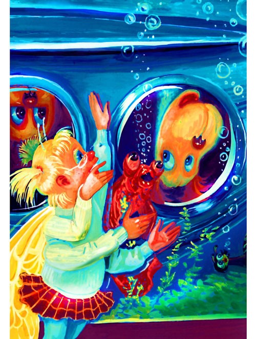В просторном, размером с дворовую песочницу, аквариуме, в рощице изумрудных водорослей беззаботно резвились рыбки. Глазастые звездочёты плавали наперегонки с шустрыми вуалехвостами, а серебристые скалярии играли в прятки с алыми барбусами и радужными гуппи. И вдруг сверху на бедные рыбьи головки плюхнулось нечто огромное, странное и непонятное. Рождая фейерверки воздушных пузырьков, это непонятно что стало медленно опускаться на дно. Обитатели аквариума в панике бросились врассыпную. Они в отчаянии бились о прозрачные берега, ища спасения за пределами своего любимого стеклянного дома.