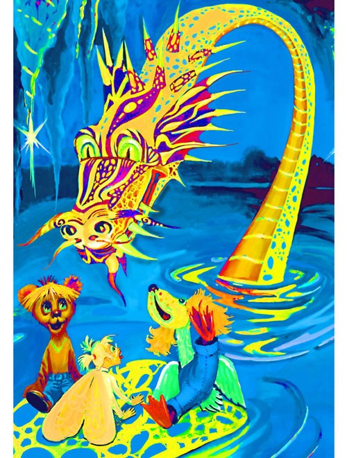 Медвежонок, Моль и Гагагав, преодолев охватившее их на какое-то время оцепенение, представились и, перебивая друг друга, рассказали о цели своего путешествия и о том, как они здесь оказались.