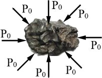 Бесконечный столб эфира создаёт гидродинамическое давление P0 не только на атомы, расположенные на внешней поверхности тела, но и на все внутренние атомы материального тела давлением Pi (рис. 3.1.2), так как обладает свойством сверхтекучести и сверхпроницаемости.
