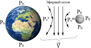 Все тела как-то двигаются относительно друг друга в «Эфирном Всемирном Океане» (рис. 3.1.3). Поэтому между ними существует поток эфира с некоторой скоростью