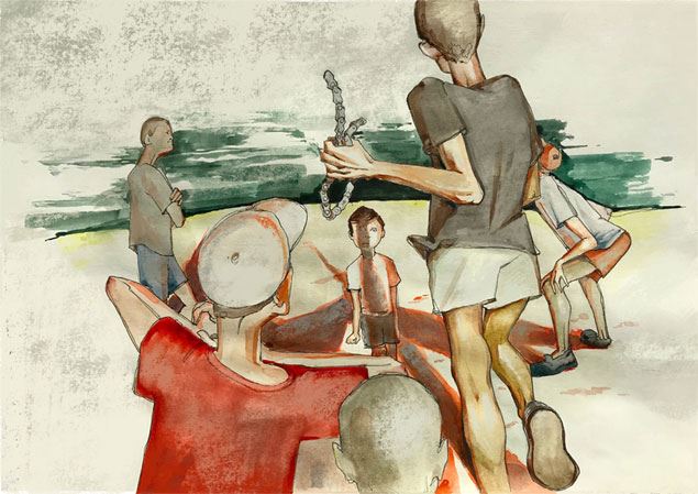 В какой-то момент я обнаружил себя возле гаражей окружённым пятью грязными общежиторскими «Гекельбери Финнами» в рванье. Один из них даже держал в руке кусок велосипедной цепи. Тогда я ещё не знал, что это «холодное оружие ударно-раздробляющего действия». Но испугался я и без этого. Во-первых, их было много, я оглянулся, никого из моих товарищей постарше рядом не было. Во-вторых, общежиторские были старше меня. В-третьих, в их безжалостных прозрачных глазах настолько отсутствовали признаки интеллекта, что я испугался животным страхом, как при встрече в лесу с голодными волками.