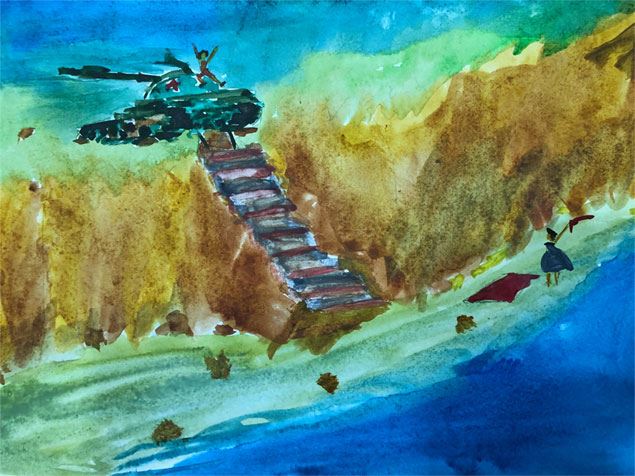 Мама, конечно, ничего не слышала из-за грохота дизеля, но красиво помахала рукой на фоне синего Чёрного моря. Я слез с грохочущего танка и побежал к моей прекрасной маме по глинистому склону. Папа командовал танкистами, и они столкнули лестницу одним концом вниз, предварительно отвязав толстый стальной трос.