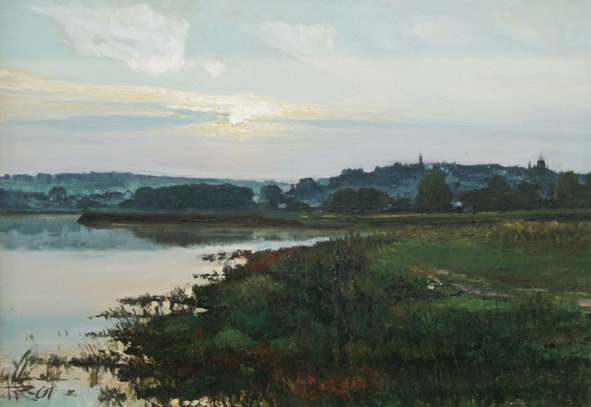 Наша лодка несется по водной глади так быстро, что в ушах начинает шуметь ветер. И порой мне кажется, будто проплывет мимо ещё одна зеленая заводь, промелькнет невысокая глинистая круча, и после этого откроется нам вид невредимого русского города, где множество церквей белокаменных, у которых не порушены ни кресты, ни купола. Но вместо этого за очередным поворотом мы видим пологий спуск к реке, заросший белесым ковром мать – и – мачехи, далекую, полуразрушенную каланчу деревенской церквушки, одиноко белеющую на тёмном фоне молодого ельника, да голую, поражающую своей пронзительностью, даль.
