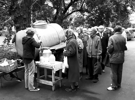 О, прошлые юные лета!За вами бежать нелегко…С бидончиком нежного цветаПлетусь покупать молоко.Всегдашнее место. С рассветаЗдесь стелют листву тополя,Здесь стайка отставших от лета,Таких же настырных, как я.С бидончиком нежного цвета,В цепочку, как бисерный путь,Стоят, чтоб купить себе лета,И выпить, и леты вернуть.Они – не актёры на сцене,Но как живописна их нить…Ах, мне бы скорее к цистернеИ лета в бидончик налить!Безрогая дура-цистернаХранит сладострастную снедь:В железной корове люцерна,И солнце, и облако есть.В ней руки доярки ПолиныИ волос от ейной косы,Там девять процентов полыниИ восемь – вечерней росы,Рассвет на пригорке у речкиВ обнимку с девчонкой ничьей,Вкус губ её, жарких как печка,И грустность коровьих очей.В ней стайки мальков возле тины,В ней склон голубеет во льну…Я крышку с бидончика скину,Губами я к снеди прильну,Прильну и, три литра рассветаВ себя опрокинув, спрошу:«И где вы, ушедшие лета?!»В ответ ни гу-гу, ни шу-шу…Но чу! Ощущаю позывы,Желания страстные те!И кровь побежала по жилам,И что-то урчит в животе!Вернулись ушедшие лета!Мне, кажется, все по плечу!………………………………………..Как жаль, что здесь нет туалета…Я мчусь! Я бегу! Я лечу!