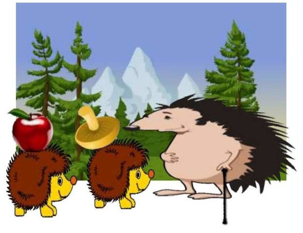 – До позднего вечера бегали ежата по лесу. Спешили. Что бы как можно больше запасов принести в кладовку дедушки ежа.