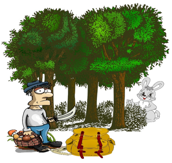 Осмелели туристы. Осторожно пошли они в лес, на ту полянку, где рюкзаки свои оставили.