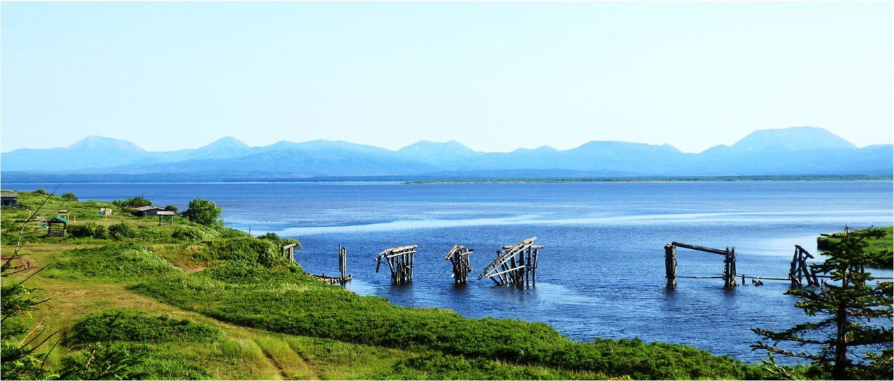 Вчера отдохнул денёк. Погода прекрасная, жарко, но не на открытом месте, сильный, ломовой южный ветер. Сходил по побережью Татарского пролива на Айнское озеро. Горы Ламанон как на ладони, Ичара западная, Краснова восточная.