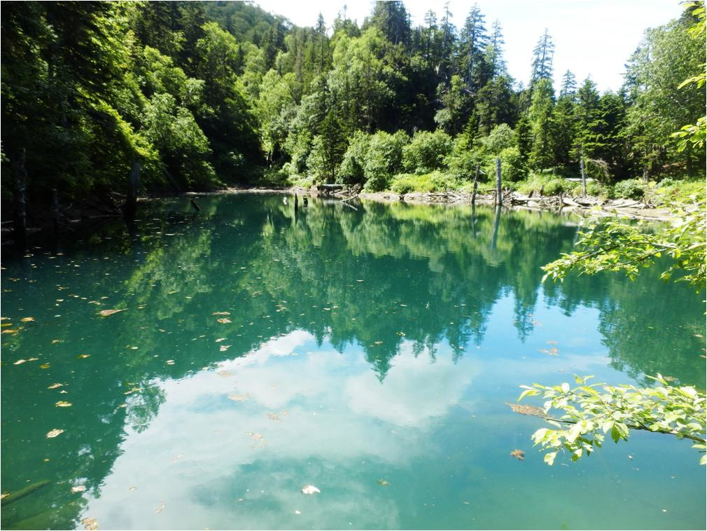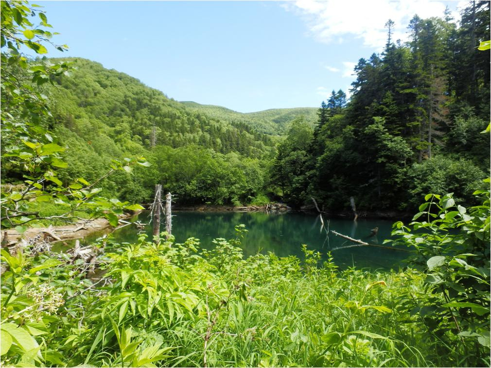 Обратно в посёлок вернулся по тропе, берегом протоки. Погода отличная. Получились не плохие виды сахалинской природы.
