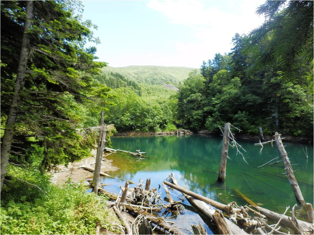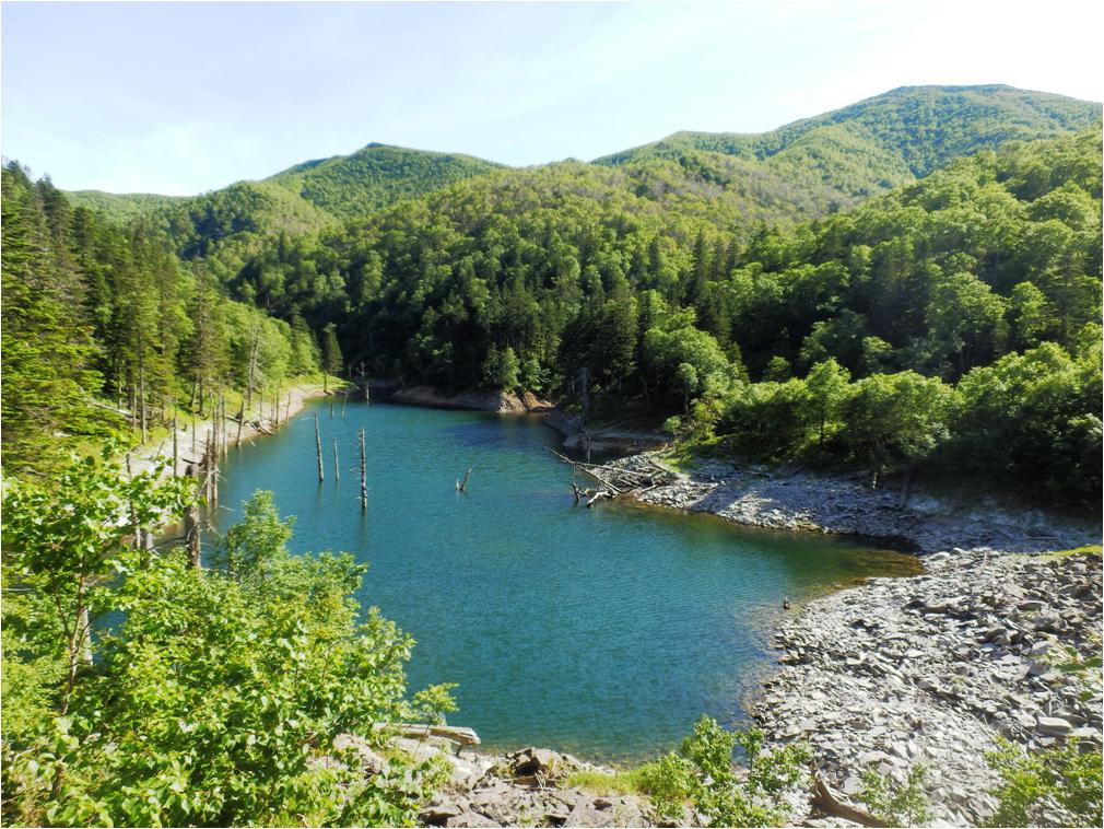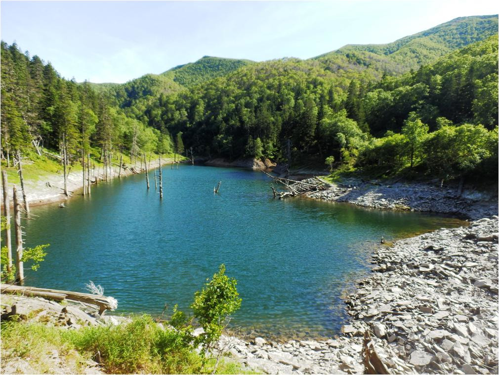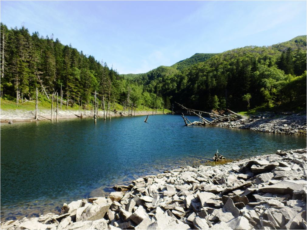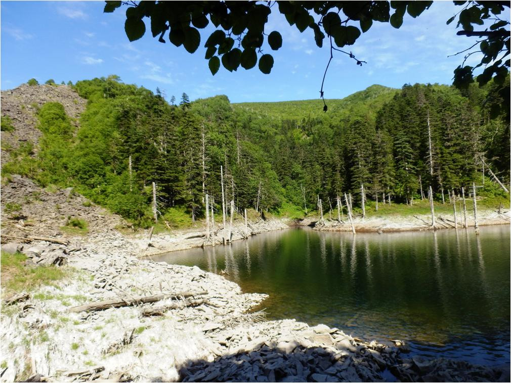Допустим озеро в верховьях реки Тиобут, Мицулёвский хребет. Не казалось мертвым, хотя там нет проточной воды. Может потому что была осень, вокруг красиво. Можно было почти в любом месте подойти к воде. И не было в озере, на берегу сухостоин, мертвых деревьев. Наверное, выбеленные временем стволы деревьев, торчащие из воды, дали ощущение мертвых озер.
