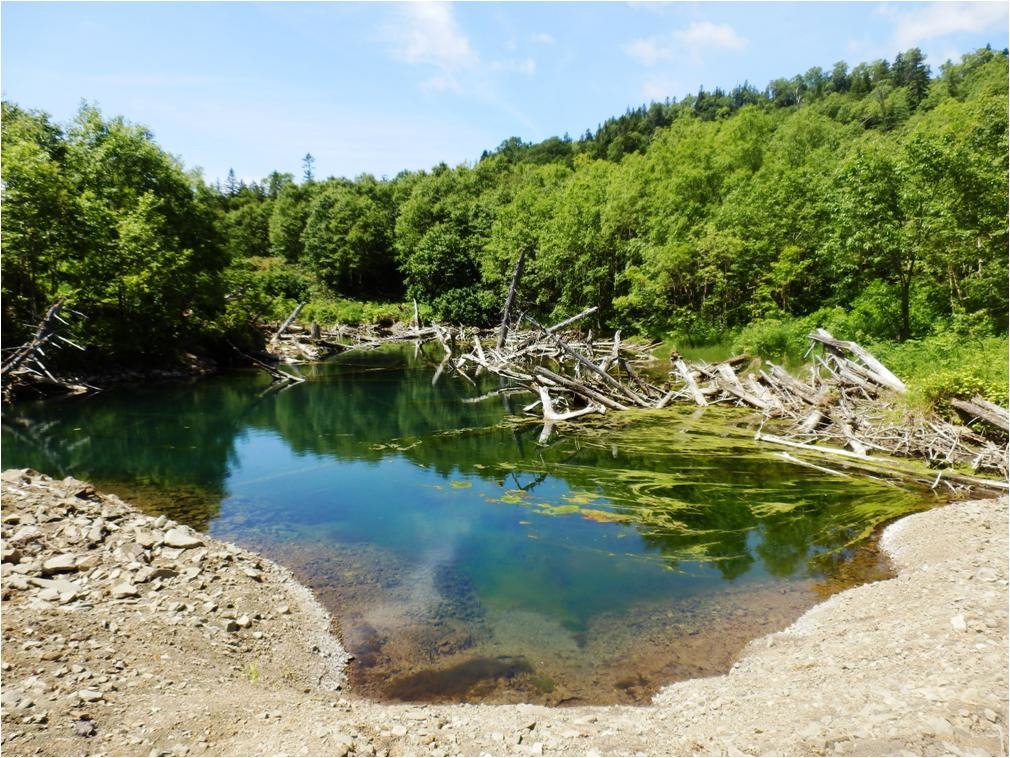 Ну что, нужно выполнять вторую часть маршрута. С речки Киевки попасть в город Макаров. Вот так получилось, виноваты метеоусловия. За место верховьев речки Айнской, попал в верховья речки Болотной. Она впадает в Айнскую, примерно в десяти километрах северней устья и озера Айнскова. Речка Болотная, славится крупным тайменем. Тропа, по которой шёл, набита рыбаками – браконьерами. По осени ходят промышлять большого тайменя.