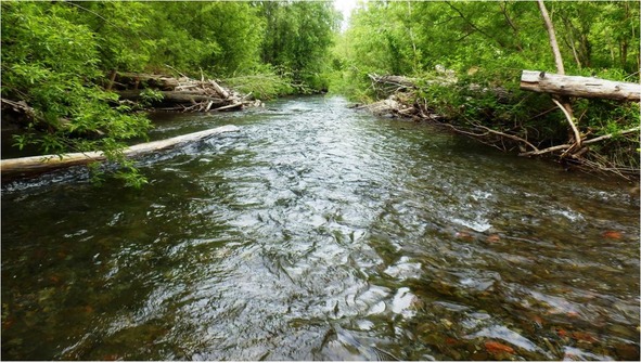 По отвилку прошёл на запад. Снял рюкзак, спустился к реке, нужно брод искать.
