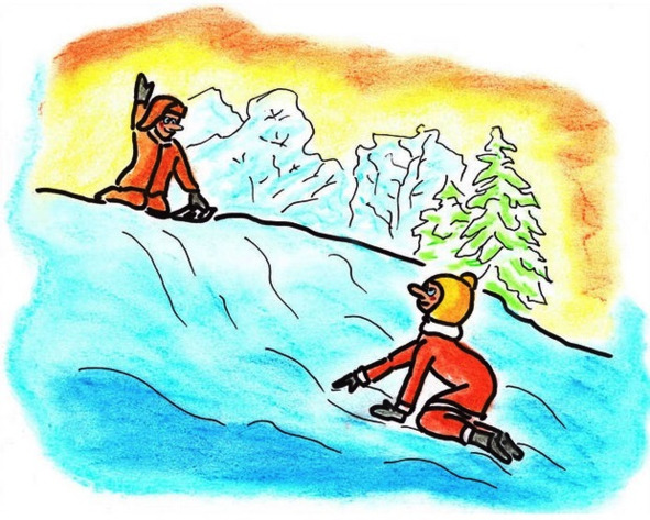 «Вот, теперь идём на склон», – приглашает тренер.