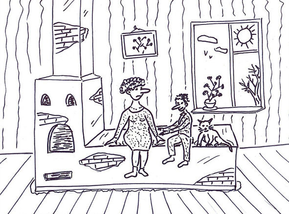 Петя несся как вихрь, вскочил в дом, снял мокрую одежду, забрался на жаркую лежанку.