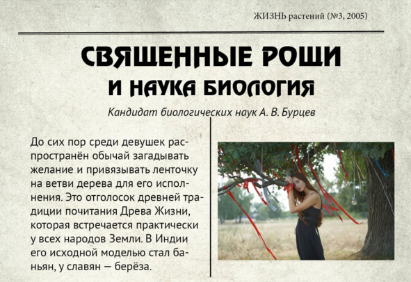 В научном обиходе считается, что почтительное отношение к волшебной силе деревьев основано на примитивных верованиях. Но так ли эти верования примитивны? Обратимся к данным биологии. Способны ли деревья выполнять функции, которые приписывает им народная молва?