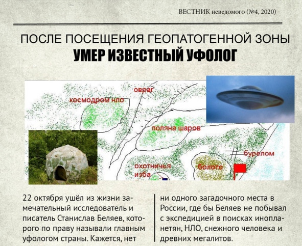 Кончина Беляева стала очередной загадкой. Станиславу не исполнилось и 55 лет. Связана ли смерть писателя с посещением им накануне знаменитой аномальной зоны вблизи города Н.? Исследователь непрестанно подвергал себя опасности, отправляясь в места, где вполне вероятны неприятности для здоровья и самой жизни.
