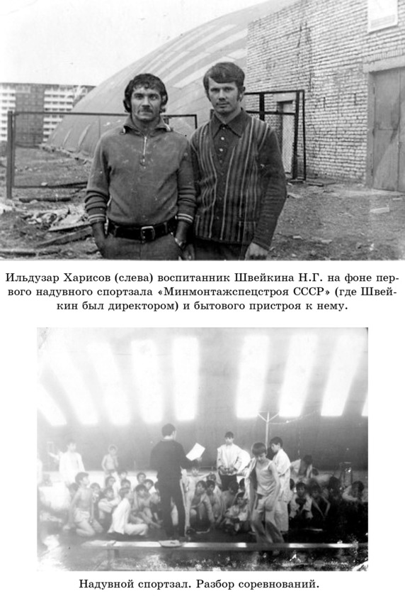 «Забавная конструкция» в городском парке появилась, когда секция самбо, созданная Швейкиным вскоре после прибытия на КАМАЗ в 1972 году, набрала популярность и ей стало тесно в подвалах и школьных спортзальчиках. Заметили это и в профкоме Минмонтажспецстрой, а за неимением возможности быстро построить стационарный спортивный комплекс из Москвы выписали мобильный спортзал, залили для него фундамент.