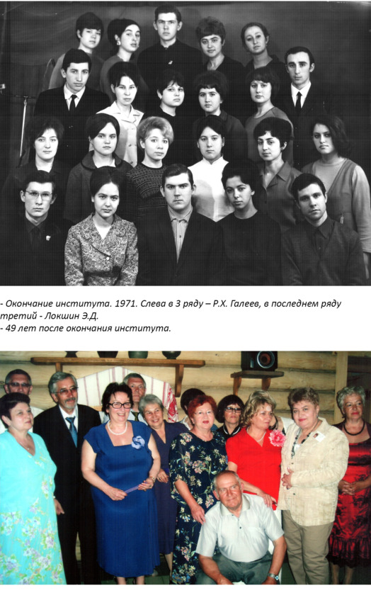Хамедова Айсылу Харисовна, сестра Р. Х. Галеева: Много лет прошло, а как сейчас помню. В 1975 году Рината-абы из Йошкар-Олы направили в командировку в Прибалтику – Ригу, Таллин. Оттуда он привёз мне ткань в клеточку для пальто, самую модную в то время – кримплен. Сколько было у меня радости! Полки в магазинах пустые, кругом дефицит, а у меня пальто как в модных журналах! Не поверите, мы вместе с Ринатом-абы придумывали фасон и шили обновку. Потом все друзья смеялись: «Ты теперь самая модная девочка в деревне!». Окончив школу, я поехала поступать в строительный техникум в Йошкар-Олу – поближе к Ринату-абы. Жила в общежитии, а когда мне было скучно, то прибегала к нему в больницу. Дождусь его с работы, с приёма в поликлинике, а потом мы вместе гуляем по городу, купим мороженого или в столовую зайдём – кафешек же раньше не было. И он не один, и я не одна – хорошее было время. Ринат-абы специально приходил в общежитие, читал лекции: отдельно для девочек, отдельно для мальчиков. Это чтобы меня поддержать, чтобы авторитет поднять.