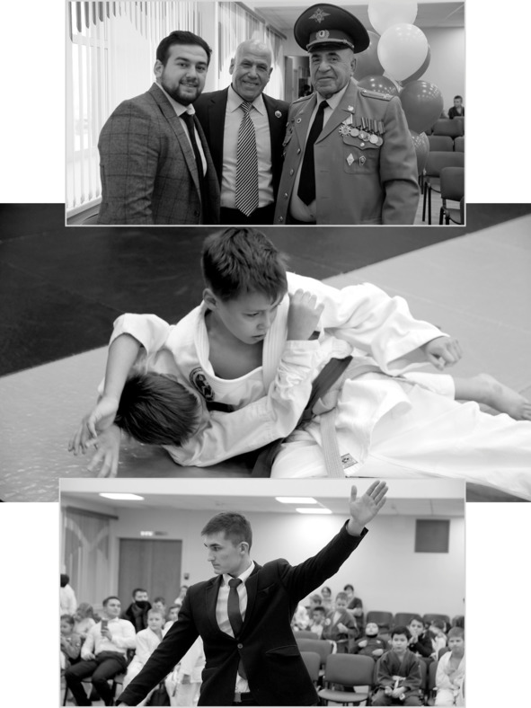 1. Слева направо: Роман Терзиян – менеджер ДСПК «НУР», основатель клуба Николай Швейкин, Шаик Ахмедов, подполковник, ветеран дзюдо, тренер (Елабуга). 2. Борьба. 3. Илья Морсков, тренер ДСПК «НУР», главный судья турнира