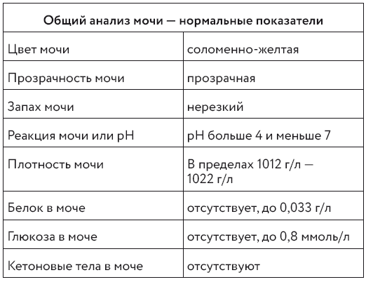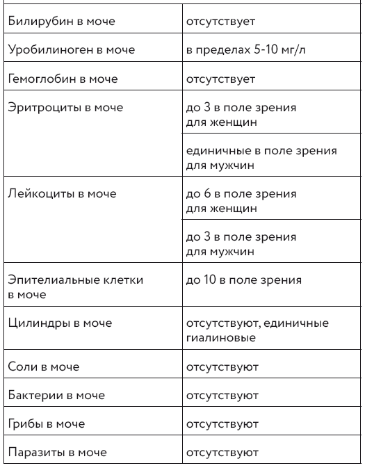Чтобы знать патологию, привожу нормальные показатели мочи.