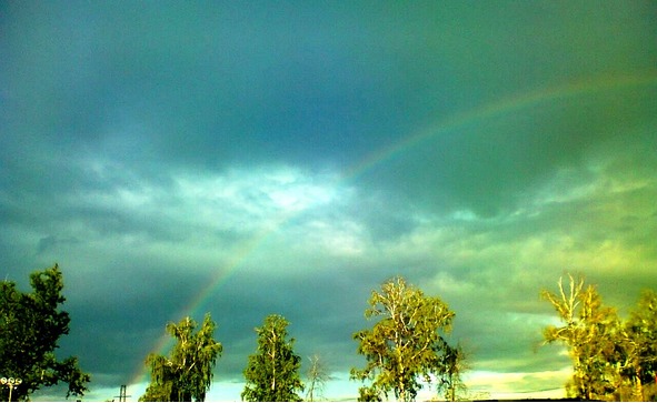 Полдня до обедаДождик лил за окном.Подпоясалось небоРадужным кушаком.Луж блестят оконца,Я босиком иду,Ходит со мною солнце,Меряя глубину.Тихо сбегая с горок,Шепчутся ручейки,Погреться из узких норокВыползли червяки.Скрылись легкие тучки,Отсверкали грозы,Лишь на репейных колючкахБлестят расставания слезы.