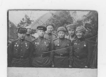 Разведчики с командованием полка. Во втором ряду в центре гвардии сержант Григорий Лобас. 1944 год. (Из фронтового архива Г.Т. Лобаса)