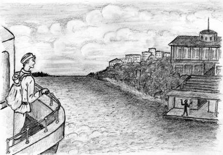Теплоход тем временем подходил к Сольвычегодску и мысли Александра переключились на предстоящую встречу с родными. Вдали уже виднелась высокая колокольня собора с длинным острым шпилем.