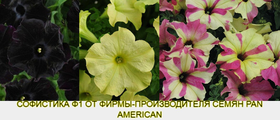 Pan American – у этого производителя очень много семян красивых видов различных цветов, но среди кустовой петунии лично нам понравилась только серия Софистика – удивительной красоты расцветки, которых не встретишь в сериях других производителей. На рынке петуния этой серии стоит намного дороже традиционных расцветок, но и стоимость семян впечатляет, иногда превышая стоимость семян остальных серий в несколько раз! Это существенный минус Софистики…