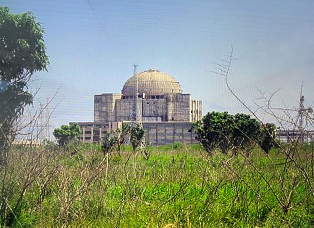 Вид на первый блок АЭС «Хурагуа» со стороны Карибского моря. Второй блок за ним.