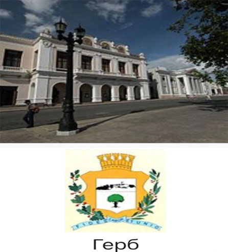 Пасео дель-Прадо, главная улица Сьенфуэгоса и герб города.