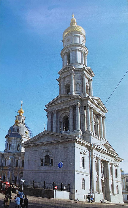 В их застройке представлены классицизм, модерн, Нео ренессанс (напр. Харьковский драмтеатр им. Т. Г. Шевченко, 1843 г.). Поражает крупнейшая в Украине Синагога на ул. Пушкинской, открытая в 1913 году, к её описанию мы ещё вернёмся, не синагоги, а улицы Пушкинской. Доминантой центра города является колокольня Успенского собора, построенная в 1821–37 гг. в память о победе в Отечественной войне 1812–14 гг. Её высота – 89 м. к ней примыкает Успенский собор (1771–77).