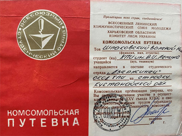 В свой первый стройотряд после 1-го курса Командир также попал может случайно, а может и нет. За парнями после армии вербовщики наблюдают давно и сразу предлагают им «золотые горы», это же вам не салага какой-нибудь – десятиклассник бывший. Армейцы как правило дисциплинированные и как правило многие уже владеют какими-либо строительными профессиями. Помнится, как его расспрашивали об этом, и он ответил, что умеет штукатурить, мол в армии этим делом занимался неоднократно – в «учебке» в Союзе, и ему тогда сразу предложили записаться в бойцы отряда, уезжавшего на Целину, мотивировали тем, что попадёт сразу в дальний отряд после первого курса. Обычно все начинают с «ближних» отрядов – по колхозам Харьковской области и рядом, собирать помидоры, свёклу, клубнику и пр., а там заработки меньше.
