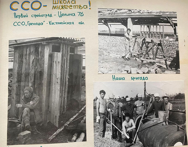 Подъем в 7 утра, завтрак, работа, обед, работа, ужин. Строили мы тогда домики из кирпича на 2 семьи и большие кошары для скота. Кошары дорого стоили по сметам и их старались полностью завершить до отъезда. В бригаду входило 6–8 бойцов: пара на «колобахе» – бетономешалке, пара подносчиков кирпичей, пара каменщиков, которые были в особом почёте особенно те, кто вёл кирпичную кладку быстро и ровно по «ниткам» и разнорабочие. Выходной день – один в неделю, правда мы ещё должны были нести культуру в массы, организовывали концерты, в местном клубе были инструменты, и командир дал команду, что надо организовать ВИА и дать концерт.