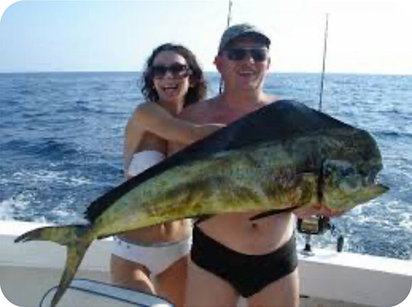 А друзья-американцы после этого начали бурно поздравлять «щуплого» с крупным уловом, стуча его по спине ладонями и крича «Welldone» – Молодец! Русский мужик при этом скромно стоял в стороне, не ожидая благодарностей в свой адрес, потягивая туземное пиво дрожащими от напряжения после борьбы со спиннингом руками. Затем, наконец, наступила и моя очередь сесть в вожделенное кресло с центральным спиннингом. Сел и только настроился на долгое ожидание, как была резкая поклёвка, а за ней сразу последовал обрыв лески. Наверно марлин клюнул! Мани-Мани быстро вставил мне в держатель новый спиннинг со свежей наживкой, и тут же сразу состоялась новая поклёвка. Красиво поднимая, и опуская удилище спиннинга легко и играючи, автор, зная, что на него смотрят дамы, небрежно вытащил на борт небольшую сверкающую на солнце серебром рыбину. Она была не очень большая, как предыдущие зелёные корифены, а всего лишь с локоть размером, но так примерно крупная, так сказать. Это была рыба под местным названием – Бонита – «красивая», весом на 8–9 кг. Да, плотная, крепкая и толстая, но не очень большая. Мал золотник, но дорог! А шо делать, как говорят в Одессе? Шо клюнуло, то клюнуло! Шо добыли, то и имеем. Какая разница кефаль это или какая-то корифена! Был бы у вас только адреналин для счастья и мани в кармане.