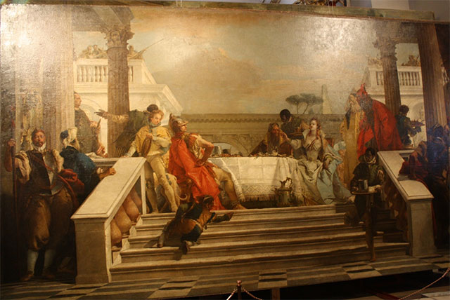 В 1800 году венецианский торговец картинами и комиссионер Пьетро Конколо (1748–1810) привез из Италии партию картин для продажи их Императорскому Двору, но Павлу Первому они почему-то не понравились, и как следует догадаться двенадцать произведений искусства, приобрел Юсупов. Та партия антиквариата включала в себя два огромных полотна из шести картин знаменитого Джованни Батиста Тьеполо (1696–1770) «Встреча Антония и Клеопатры» (1747) и «Пир Клеопатры». Четыре вертикальные картины позже сгорели, но два громадных горизонтальных полотна сохранились и до сих пор украшают Архангельское, периодически меняя места хранения. На полотнах представлена встреча Антония с Клеопатрой в Александрии в 34 году до н. э. после похода Антония в Армению, где он захватил в плен армянского царя Артавазда II, и пир Клеопатры в честь Антония, на котором царица растворяет драгоценную жемчужину.