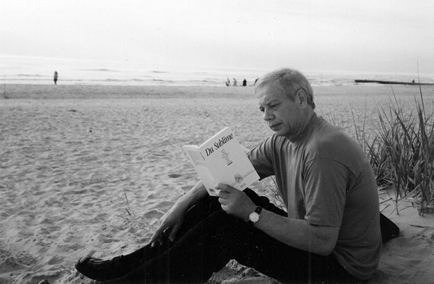 Паланга, читаю статью Ф. Лаку-Лабарта из коллективного французского сборника «Du Sublime» (1985). Литва, июнь 2002 г.