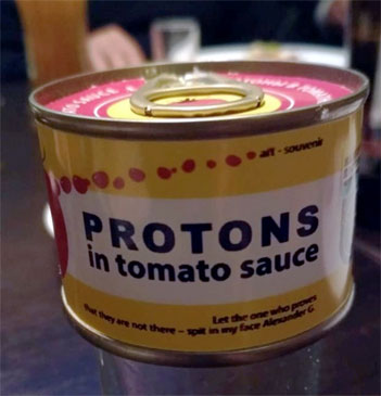 В этот раз один из коллег показал нам маленькую консервную баночку с интересным названием «Протоны в томатном соусе». Никто вначале не понял, что означает эта баночка, и только потом до меня дошло, насколько символична эта аллегория.