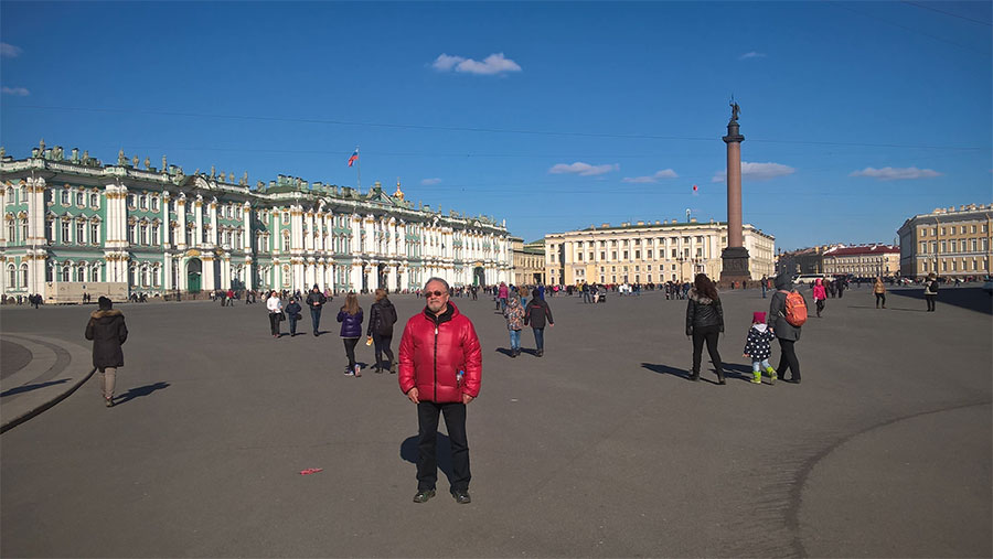 Быть в Санкт Петербурге и не посетить Эрмитаж, то же самое, что быть в Париже и не посетить Лувр, такое невозможно, на следующий день мы отправились в Главный Музей пешком, благо наш отель в 10 минутах ходьбы. День был солнечный и красивая Дворцовая площадь и сам Дворец смотрелись великолепно. В будний день посетителей было не так уж много, в итоге мы провели там более 4 часов, гуляя по историческим залам и любуясь уникальными экспонатами. По какой-то причине шеф долгое время не отходил от скульптуры Вольтера, снимая её со всех сторон.