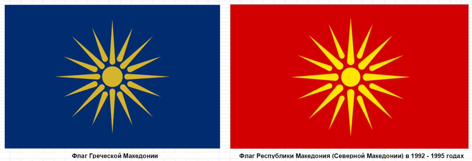 Однако, Греция выразила протест по поводу использования «вергинской звезды» на флаге славян-македонцев из Югославии. Славянская Македония уступила требованиям и поменяла свой флаг. Но, Грецию это не остановило. Они потребовали ещё изменить название страны. И на эту уступку пошли славяне-македонцы, добавив к названию своей страны «сторону света» – Северная Македония.