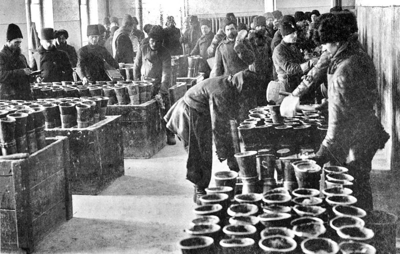 Упаковка снарядов на заводе взрывчатых веществ. 1915 год