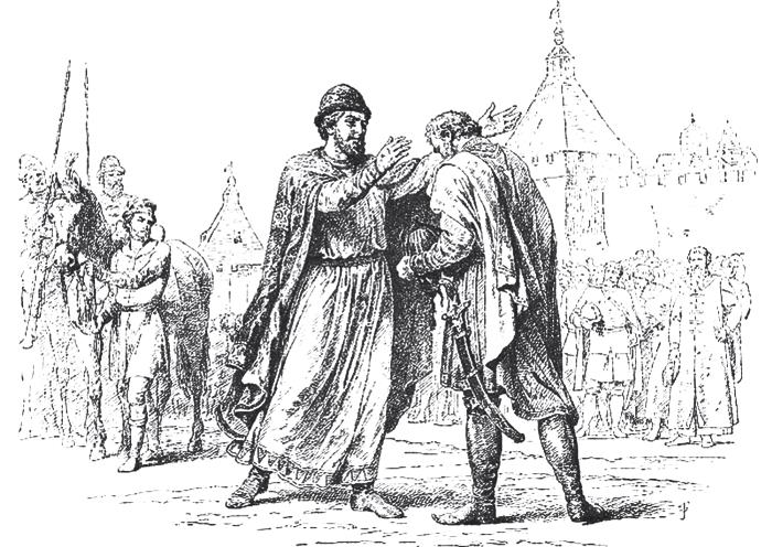 Дмитрий Донской встречает сына Василия, сбежавшего от хана