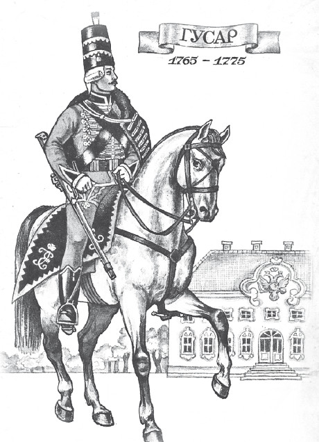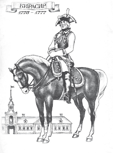 Русская кавалерия тоже была нескольких видов. Были гусары – лёгкая конница. Их оружием были сабли и пистолеты. А форму для гусар взяли венгерскую. Высокие шапки, куртки и штаны с красивой нашивкой. Были драгуны – их называли «ездящая пехота». Потому что они могли воевать как конными, так и пешими. У них были пистолеты, палаш – длинная прямая сабля. Но были и ружья со штыками, как у пехотинцев. А кирасиры – это была тяжёлая конница. В бою они, как рыцари, надевали стальные панцири – кирасы, стальные шлемы. Кавалерийский полк был меньше пехотного, в нём числилось около 500 всадников. Полк делился на 4 эскадрона по 120 человек, а эскадроны – на взводы.