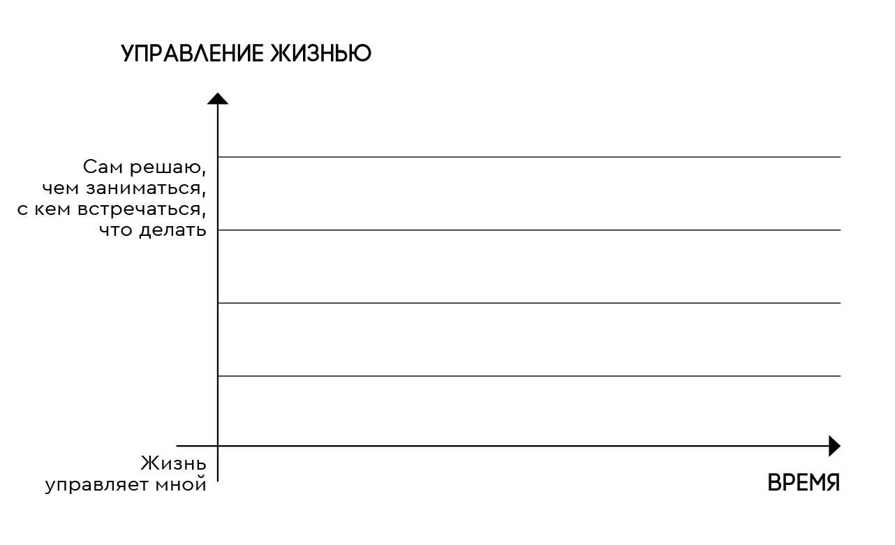Это можно представить в виде шкалы, где по горизонтали время, а по вертикали степень управления жизнью.