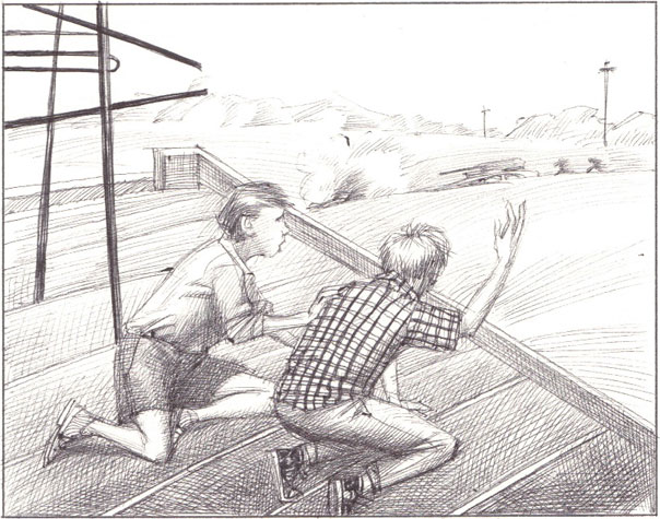 Ну и повезло нам с жильем! Уж так повезло, что мальчишки всего города могли позавидовать. За нашим домом начинался огромный пустырь. Простираясь на несколько километров, он уходил к холмам. На краю пустыря находилось танковое училище, а неподалеку от него полигон, на котором и проводились сейчас танковые ученья… Ну? Теперь понятно, почему нам повезло? Ведь с крыши нашего дома мы, как с трибуны стадиона, могли наблюдать это замечательное зрелище, которое было для нас слаще любого кинофильма о войне. Да разве мы способны были просто наблюдать? Мы ведь не на крыше находились, а на холме, с которого, как представители Генштаба, руководили боем!