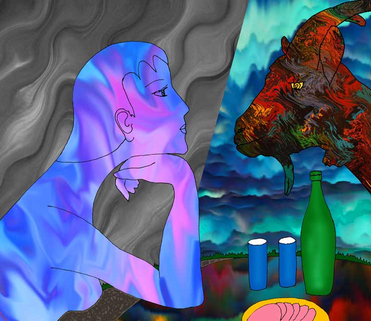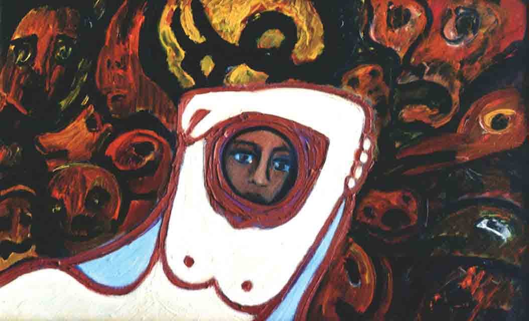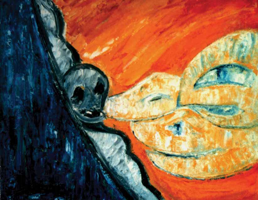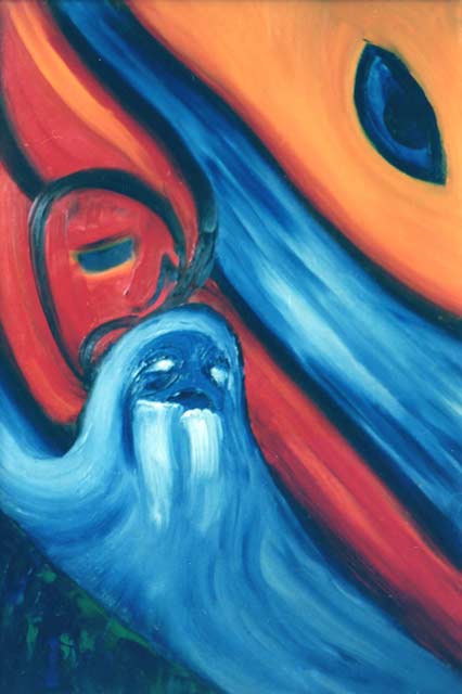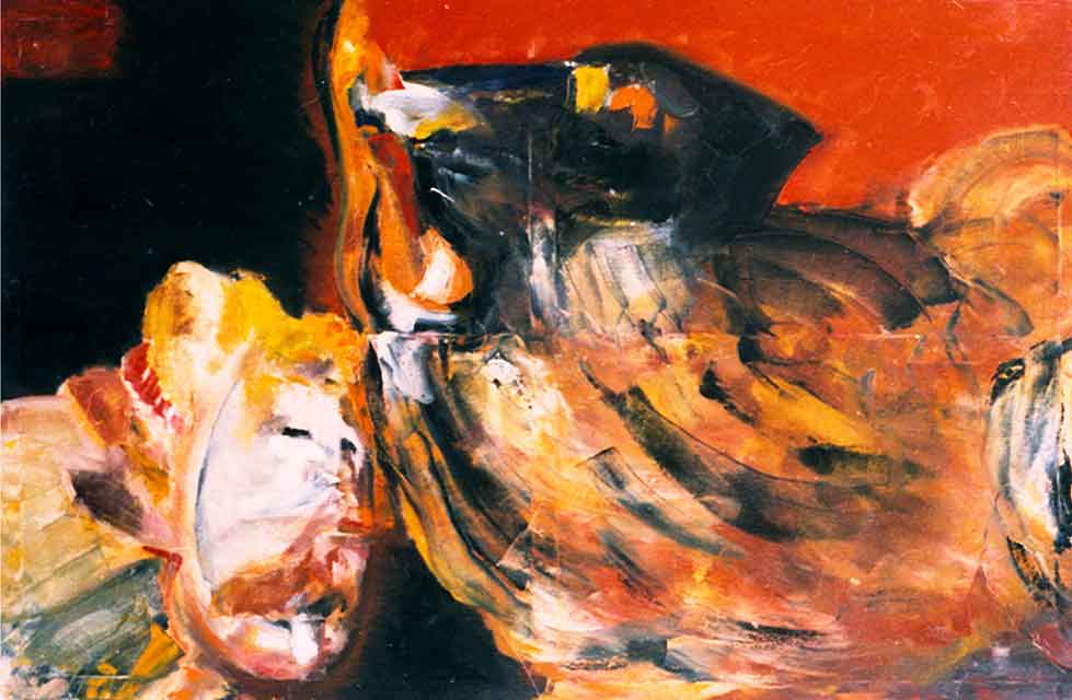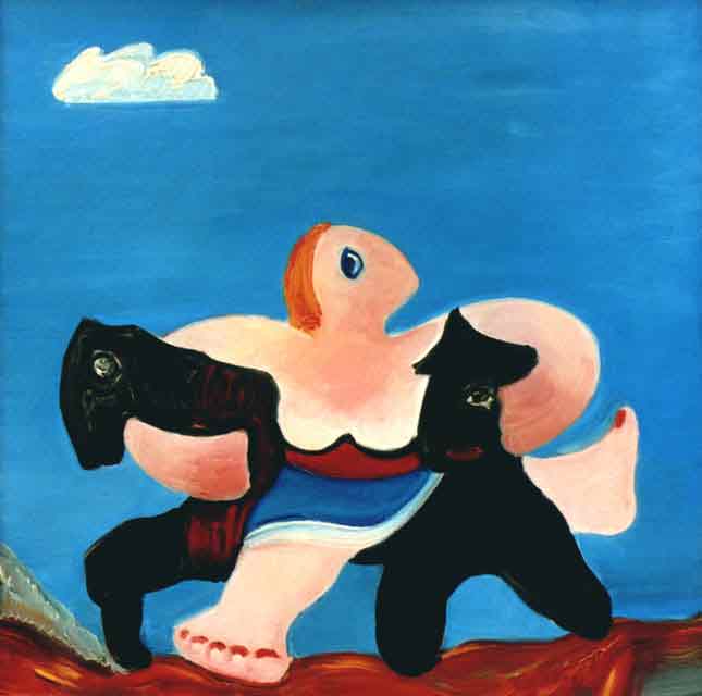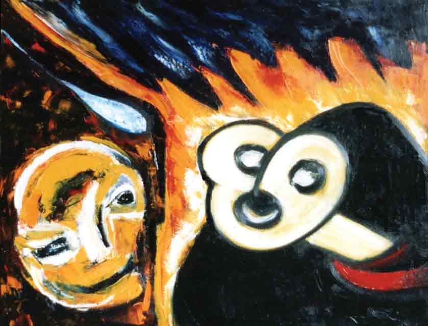 Тяни-толкай, 1993, оргалит, масло, 90х88 см.