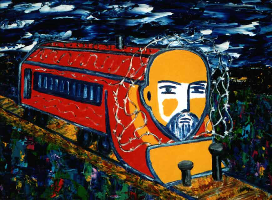 Наш паровоз, 2003, оргалит, масло, 52х70 см.