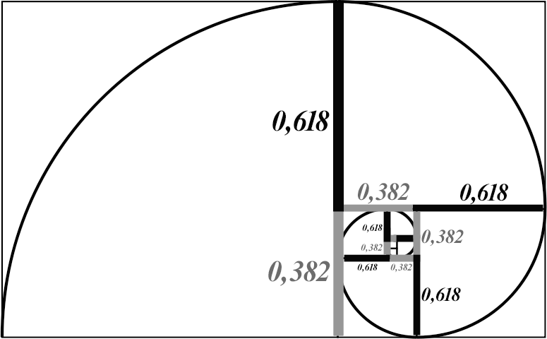 Рисунок 2.2. Золотое сечение отрезков в спирали Фибоначчи