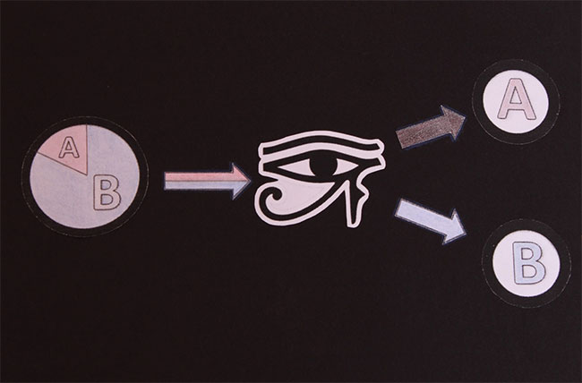 Соответственно, если доминирующей в суперпозиции является точка А, то и вероятность того, что частица займет точку А, больше. И наоборот, соответственно: