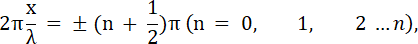 Очевидно, что этот результат будет только при условии, когда Δd = 1/2, 3/2, 5/2, …n и т. д. длины волны (лямбда):