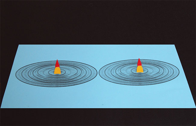 Волновая кривая вероятностей очень сильно напоминает концентрические стоячие волны, возникающие вокруг падающей капли.